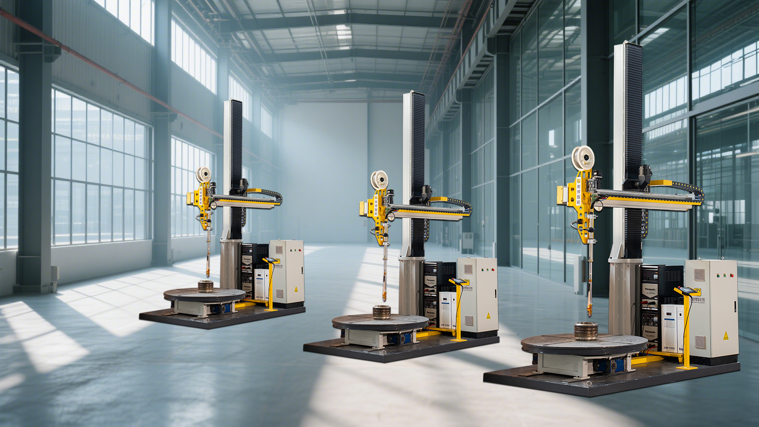 该系统采用 "变位机 + 操作机" 的核心架构,构建了高度柔性的焊接平台。工件通过四爪卡盘固定于 AR5T 型焊接回转平台,最大承载重量达 5000kg,可满足直径 35-1500mm、深度≤1000mm 的内孔及外圆工件加工。ACB2020S 型高精度操作机具备 2000mm 垂直升降行程与 1600mm 水平伸缩行程,配合伺服驱动的精密摆动机构,可实现焊枪角度的精准调节,从容应对通道、梯形槽、相贯线等复杂型面的堆焊需求。这种 "工件旋转 + 焊枪直线运动" 的协同控制模式,既保证了焊接轨迹的精度,又通过步进 / 连续运动模式的自由切换,适应不同焊缝的成形要求。